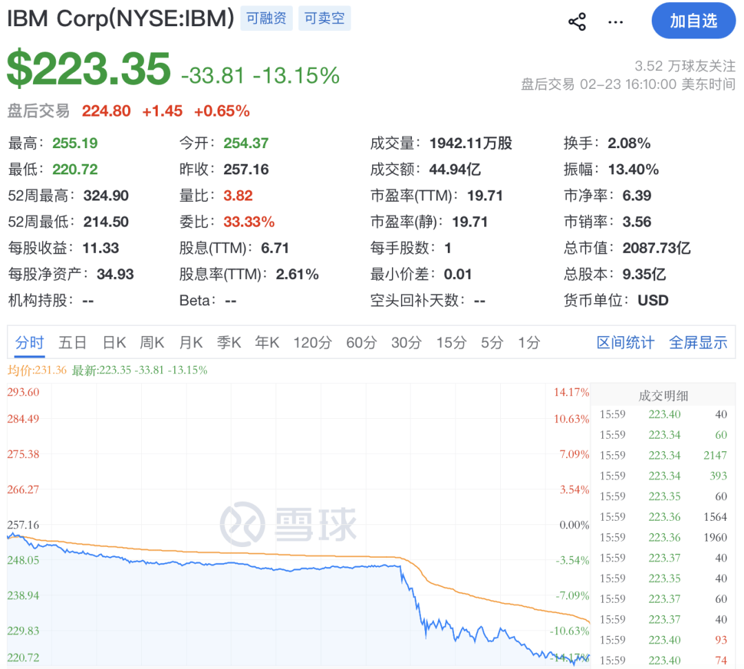 消息面上,AI初创公司Anthropic宣布其Claude Code产品推出新编程功能,实现商业编程语言COBOL的大部分研究分析工作自动化,引发市场对IBM大型主机业务前景的担忧。IBM股价周一暴跌超13%,创下逾25年来最大单日跌幅,2月迄今累计跌幅已达27%,势创数十年来最大单月下跌。