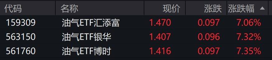受重仓股大涨影响,油气相关ETF涨超7%。