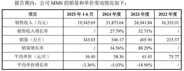 2022年-2024年以及2025年上半年(简称:报告期),中图科技PSS的平均单价由71.26元/片下降至52.79元/片,期内降幅25.92%;相较而言,MMS产品技术、工艺更复杂,经济附加值也较高,但平均单价由75.55元/片下降至56.4元/片,降幅25.35%。