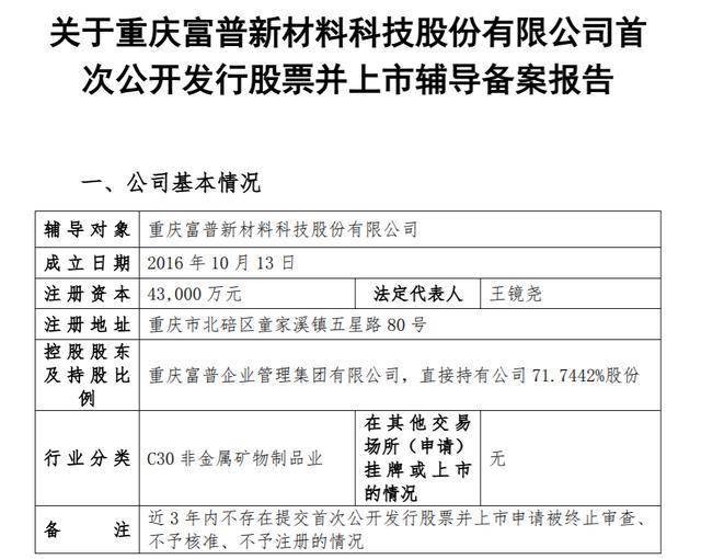 瑞财经 王敏 2月24日,重庆富普新材料科技股份有限公司(以下简称“富普新材”)在重庆证监局启动上市辅导,拟A股上市,辅导机构为浙商证券。