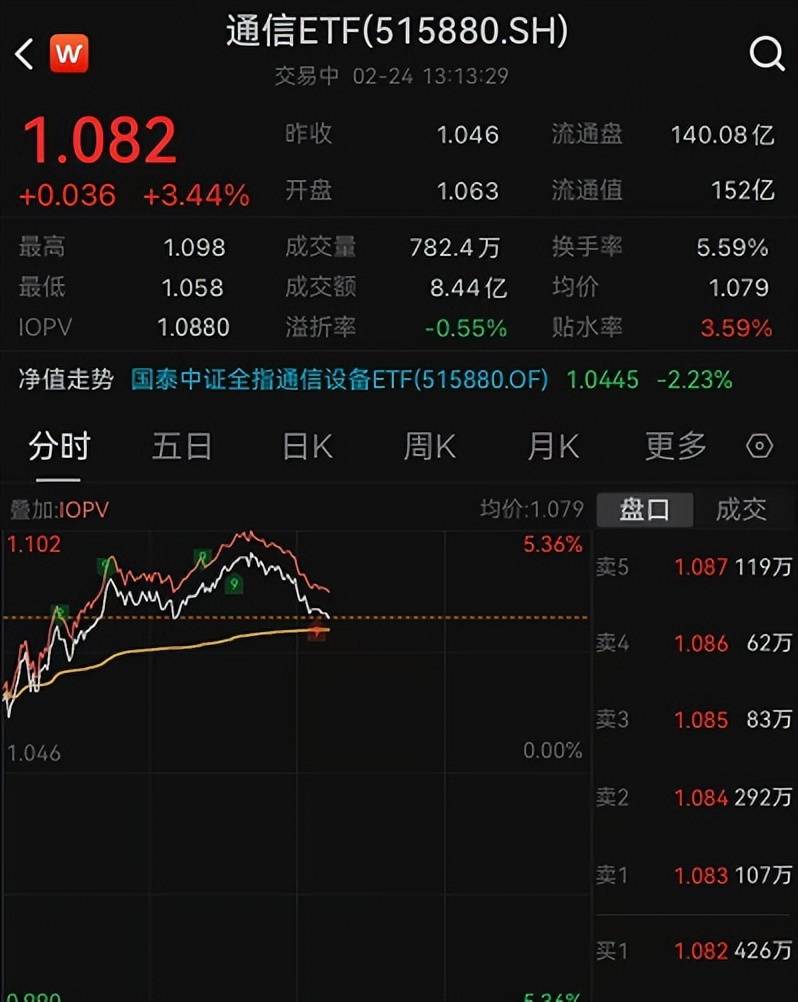 今日算力板块强势,CPO、光纤等成分强势,通信ETF盘中一度涨超4%。