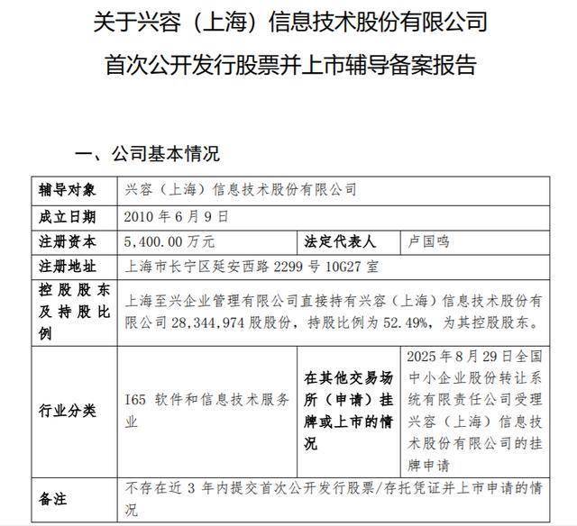 瑞财经 王敏 2月24日,兴容(上海)信息技术股份有限公司(以下简称“兴容信息”)在上海证监局启动上市辅导,拟A股上市,辅导机构为国泰海通。