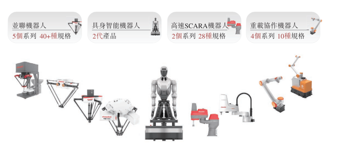 并联机器人之外,阿童木还拓展了高速SCARA机器人、重载协作机器人两大品类,并于2025年完成具身智能机器人产品线布局。