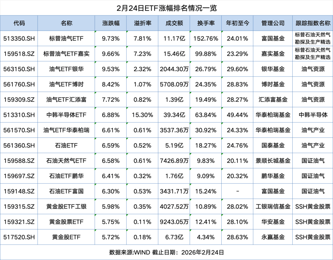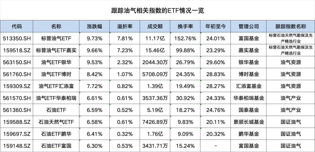 【导读】今日石油ETF强势霸榜,跨境ETF狂飙近10%