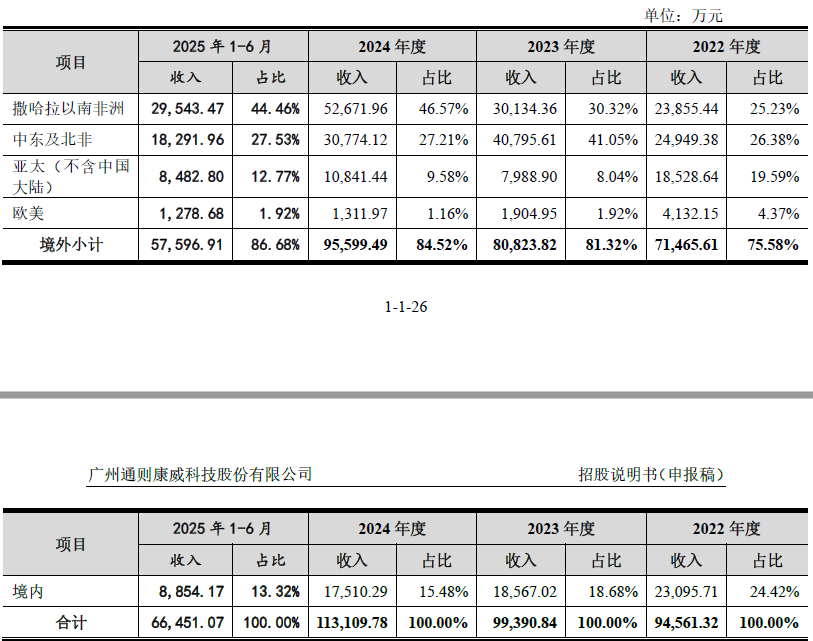目前,公司海外收入占比持续提升,2025年上半年已达86.68%,主要市场集中在中东、北非及撒哈拉以南非洲地区。境外服务费的变化对通则康威盈利有着重要影响,公司披露的信息存在误导嫌疑。