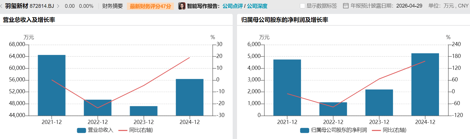 羽玺新材最令投资者警惕的数据,莫过于盈利增速的急剧收窄。
