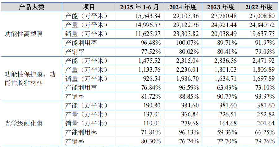 募投项目环评是项目开工的前置条件,也是IPO审核中关注的核心合规问题。虽然羽玺新材表示将在“取得环评批复后进入项目建设阶段”,但未明确预计获批时间,也未披露备选方案。即便项目顺利投产,新增产能的消化也面临挑战。羽玺新材目前功能性离型膜的产能利用率在89.71%至100.07% 之间,功能性保护膜及胶粘材料的产能利用率则在63.49%至96.59%之间,部分产品仍有产能富余。在此情况下,募投项目将进一步扩大产能,市场开拓压力不容忽视。