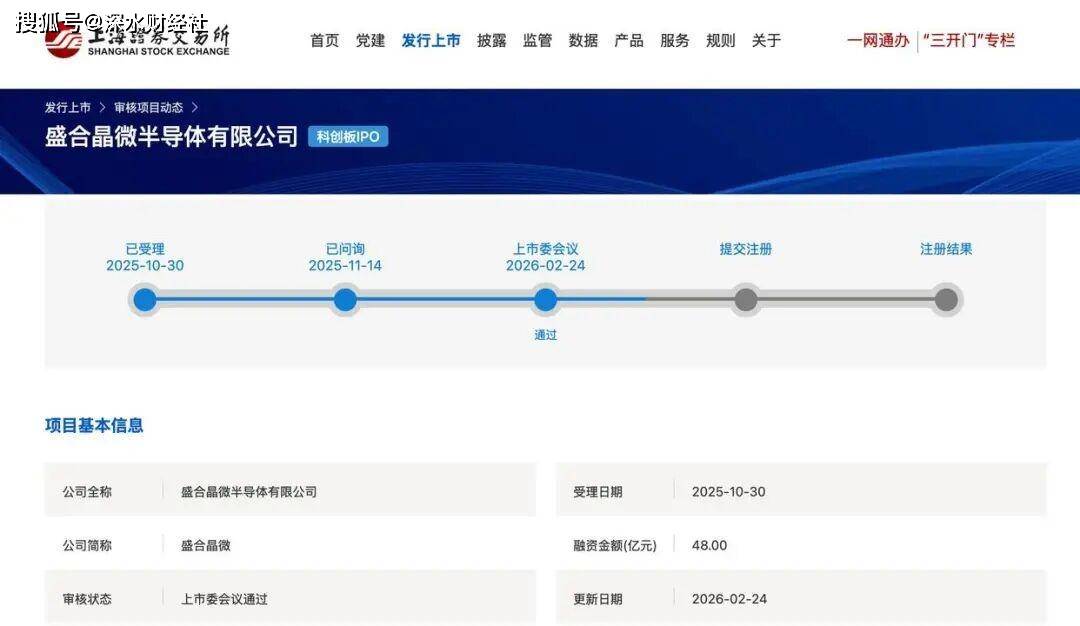 2025年10月30日,盛合晶微正式递交科创板IPO申请并获上交所受理;2月24日,马年新春后首个审核日,公司顺利通过科创板上市委审议,全程仅用117天。