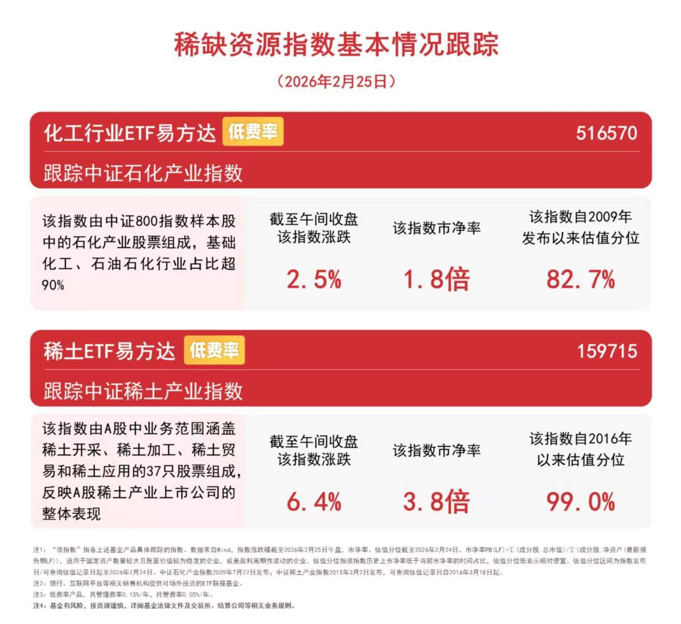 截至午间收盘,中证稀土产业指数上涨6.4%,中证石化产业指数上涨2.5%。相关ETF受资金关注,Wind数据显示,化工行业ETF易方达(516570)和稀土ETF易方达(159715)昨日分别获3000万元和4200万元资金净流入。