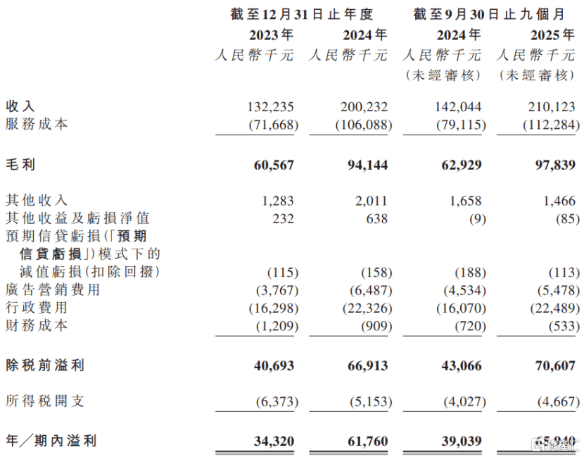 2023年、2024年、2025年1-9月,ICS集团的收入分别约1.32亿元、2亿元、2.1亿元,毛利率分别为45.8%、47%和46.6%,对应的净利润分别约3432万元、6176万元、6594万元。