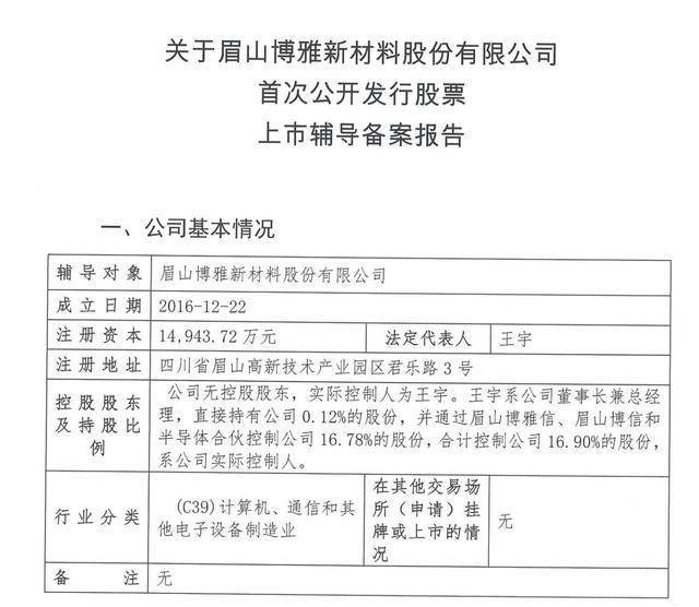 瑞财经 刘治颖 近日,眉山博雅新材料股份有限公司(以下简称:博雅新材)在四川证监局完成IPO辅导备案,拟A股上市,辅导机构为东方证券股份有限公司。