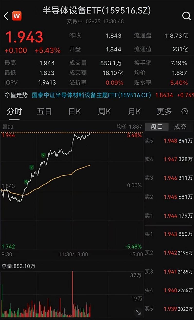今日市场回暖,半导体设备ETF(159516)上午开盘下杀后一路上扬,午后再度加速,盘中涨超5%。