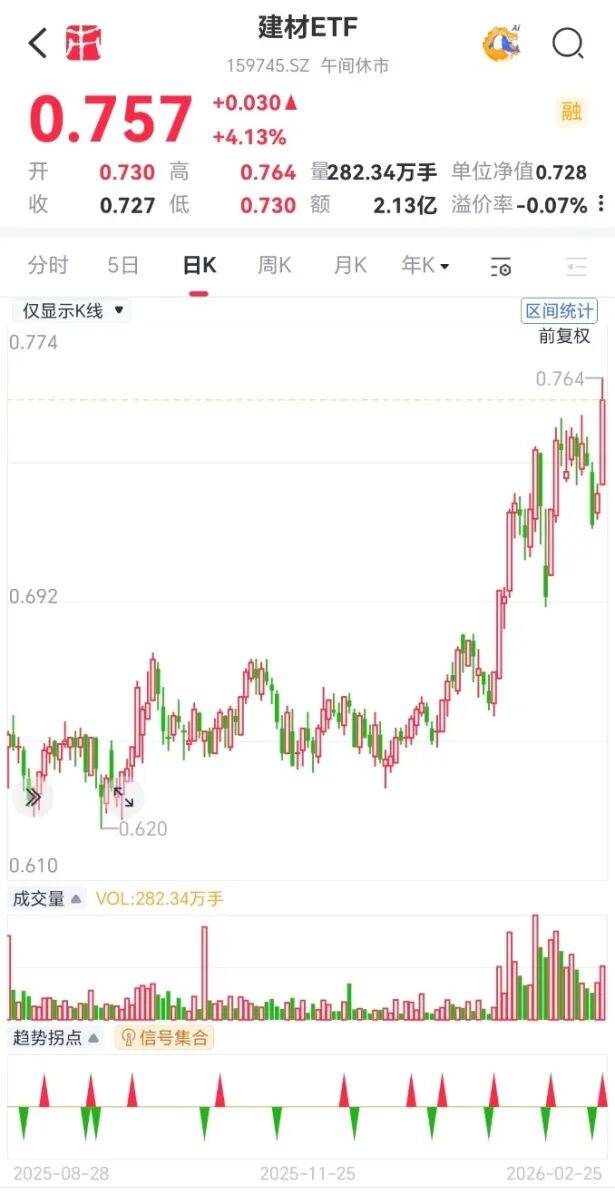 2026年2月25日早盘,A股盘面上出现了房地产及建材板块的携手大涨。申万一级行业中,房地产板块上涨2.55%,建筑材料上涨2.71%,与其关联较紧密的钢铁板块大涨5.84%,领涨两市。