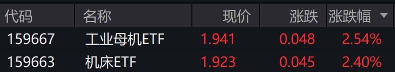 受盘面影响,工业母机ETF、机床ETF涨超2%。