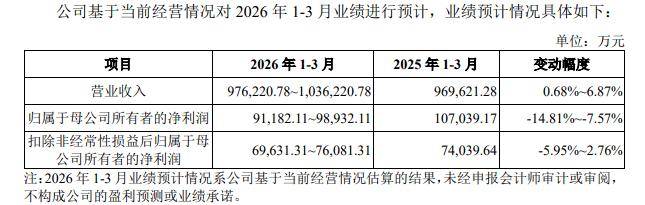 2026年1-3月,惠科股份预计营业收入为976,220.78~1,036,220.78万元,同比变动率为0.68%~6.87%。