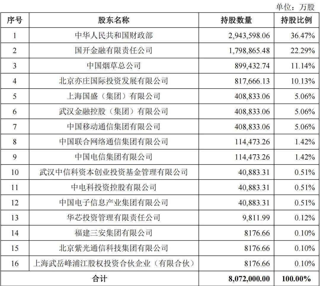 集成电路基金持有公司 20.62%的股份,为公司第二大股东。截至最新招股书披露,集成电路基金股东构成及出资比例如下: