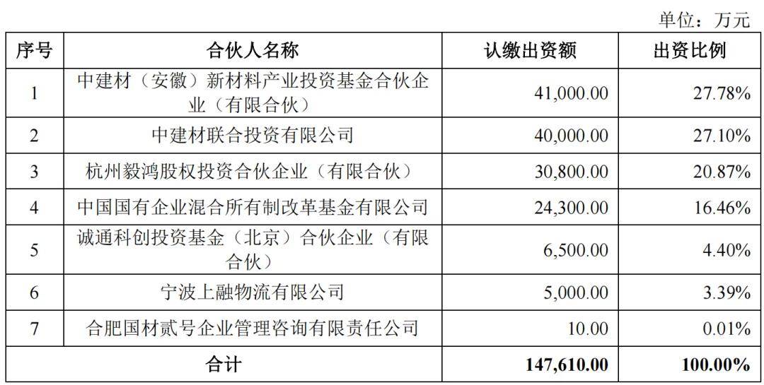 合肥国材叁号持有公司 24.55%的股份,为公司第一大股东。截至最新招股书披露,合肥国材叁号的出资人构成及出资比例如下: