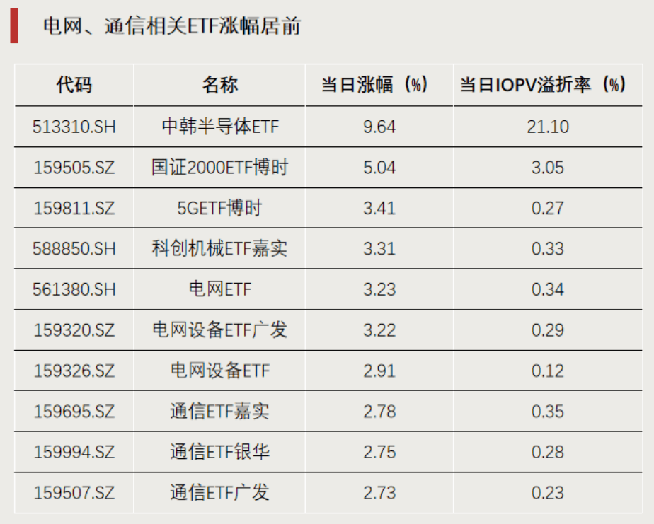电网、通信相关ETF涨幅居前
