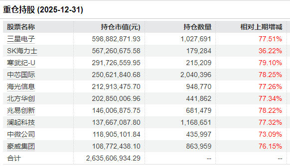 该基金的四季报中指出,报告期内韩国综指创出新高,主要受存储超级周期及AI服务器需求激增推动,DRAM内存及HBM3E同比价格均上升,DRAM合约价大幅上升,韩国半导体龙头企业的盈利能力或显著改善。展望2026年,存储周期或尚未结束,随着AI需求的持续高企,韩国龙头的盈利高增或仍持续。国内市场方面,国产替代存储厂商相继推进IPO,有望为产能扩张提供资本市场助力,继而推动相关板块与行业周期形成共振。