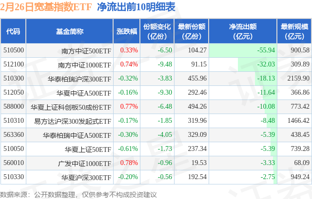 【ETF观察】2月26日宽基指数ETF净流出169.09亿元