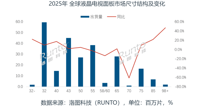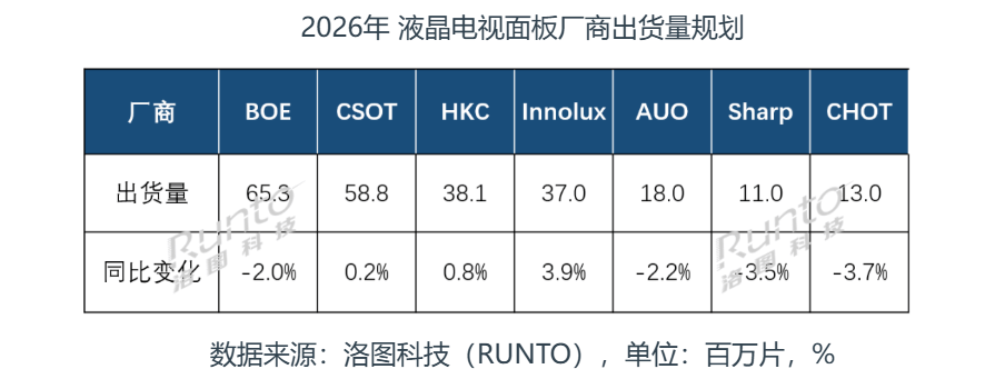 从行业格局来看,惠科实力几何?洛图科技数据显示,2025年全球LCD电视面板市场,京东方、TCL华星与惠科形成“三强领跑”格局,三家合计垄断66%的市场份额。其中惠科全年TV面板出货约37.8百万片,同比增长4.5%,市占率达15%,在85英寸及以上超大尺寸领域更具备显著领先优势。这样的市场地位,足以证明其在LCD面板领域的扎实根基。