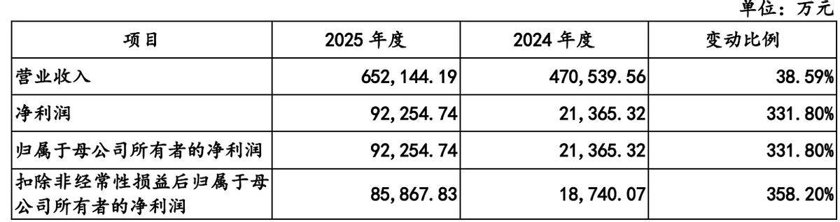 经审计,盛合晶微2025年度的营收约为65.21亿元,较2024年的47.05亿元增长38.59%;净利润约为9.23亿元,同比增长331.80%;扣非后净利润约为8.59亿元,同比增长358.20%。