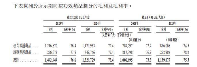 这种均衡并不代表毛利更稳招股书呈现的改善型与维稳型毛利率在不同期段也有波动,例如改善型毛利率在2023年为76.4%,2024年为72.4%,截至2025年9月30日止9个月为74.5%,维稳型毛利率在2023年为77.9%,2024年为77.4%,截至2025年9月30日止9个月为78.2%。这意味着改善型产品虽然承担着品牌心智建设的核心功能,但其毛利也可能易受市场竞争的影响而维稳型产品虽占比不高,却贡献了更稳定的毛利空间。