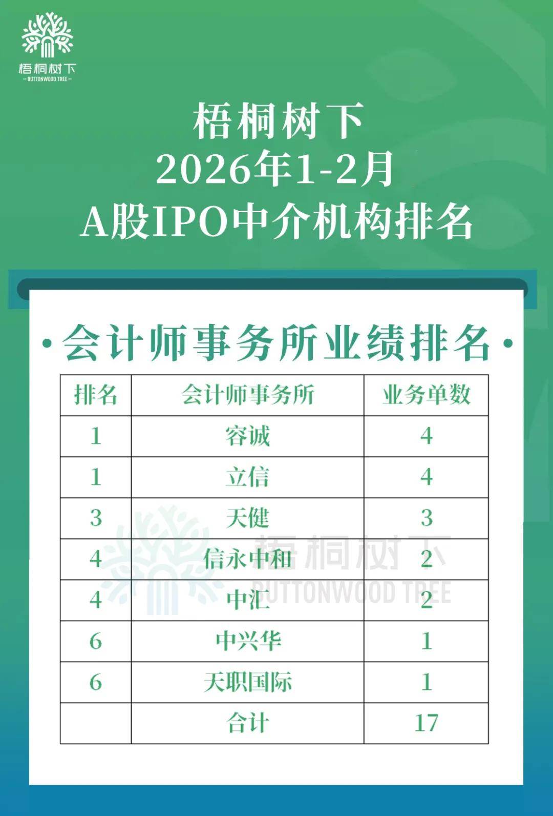 2026年1-2月,共有7家会计师事务所为这17家新上市公司IPO提供了审计服务。