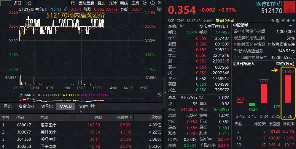 ETF盘中资讯|业绩主线渐显,惠泰医疗绩后狂飙!规模最大医疗ETF(512170)跑赢大市,场内高频溢价,亿元资金提前加码