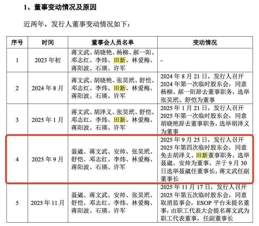 另外,田新担任总经理。2025年9月,田新卸任董事职务。