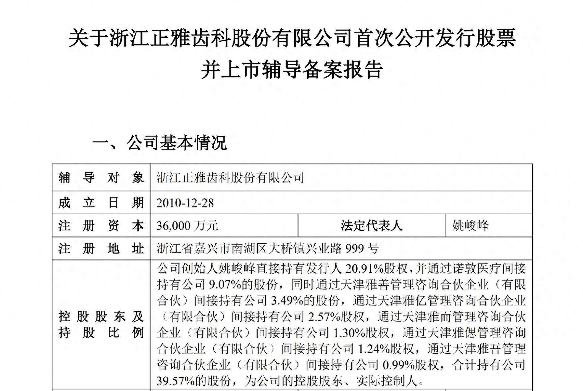 正雅齿科成立于2010年12月,注册资本3.6亿元,法定代表人姚峻峰,是一家致力于从事数字化口腔正畸技术服务和隐形矫治产品研发的企业。
