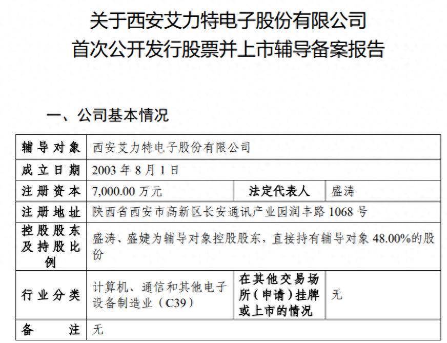 瑞财经 王敏 2月26日,西安艾力特电子股份有限公司(以下简称“艾力特电子”)在陕西证监局启动IPO辅导备案,拟A股上市,辅导机构是中金公司。