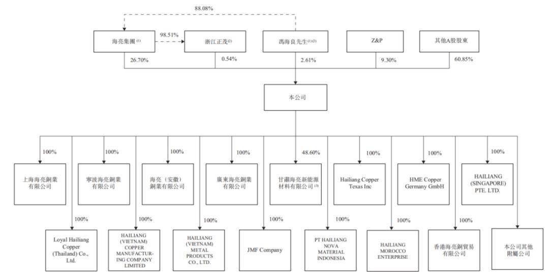 递表前,海亮股份创始人冯海良直接及间接(通过海亮集团及浙江正茂)合计持有公司29.85%股份,并控制公司30.93%表决权。