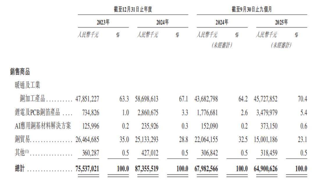 期内,暖通及工业铜加工产品收入占比超60%,2025年前9个月达到70.4%。