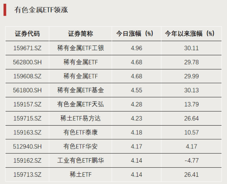 金属板块ETF大涨
