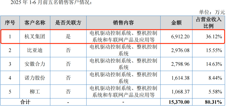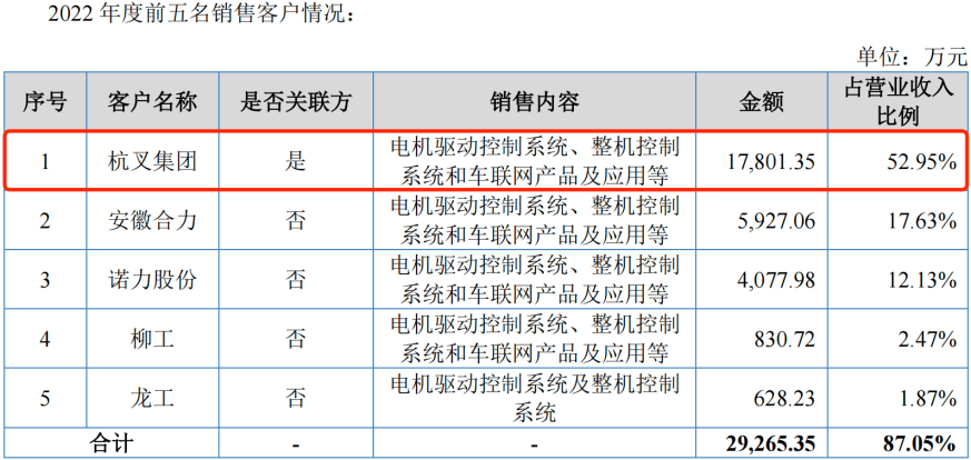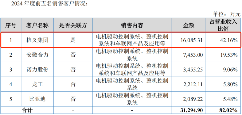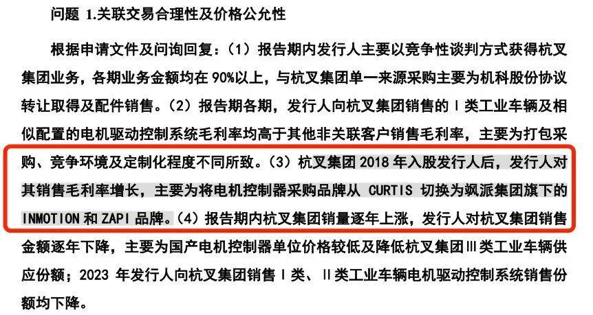 在招股书中,公司未披露对杭叉集团及其他非关联客户的具体销售毛利率,但问询函回复显示,嘉晨智能向杭叉集团销售的Ⅰ类工业车辆及相似配置电机驱动控制系统,其毛利率均高于向安徽合力、龙工、比亚迪等其他非关联客户销售同类产品的毛利率。