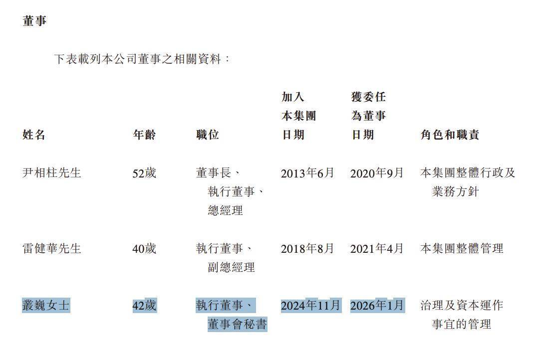 丛巍,42岁,主要负责集团公司治理及资本运作事宜的管理。丛巍早年曾任职于英极软体(大连)股份有限公司、路明科技集团有限公司,随后出任圆融光电科技股份有限公司董事兼董事会秘书以及附属公司负责人。2021年7月至2022年6月,丛巍担任深圳市看房网科技有限公司财务管理部主管。2022年6月至2024年2月,丛巍担任深圳吉阳智能科技有限公司人力资源总监兼储能部副总经理。丛巍取得中国东北财经大学法学学士学位及管理学硕士学位,其后取得中国北京大学高级工商管理硕士学位。自2011年12月起,丛巍获深圳证券交易所认证为合资格董事会秘书。