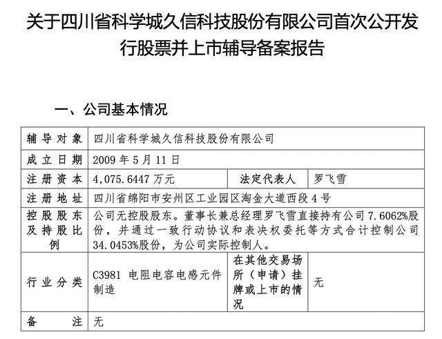瑞财经 吴文婷2月25日,四川省科学城久信科技股份有限公司(以下简称“久信科技”)启动IPO。