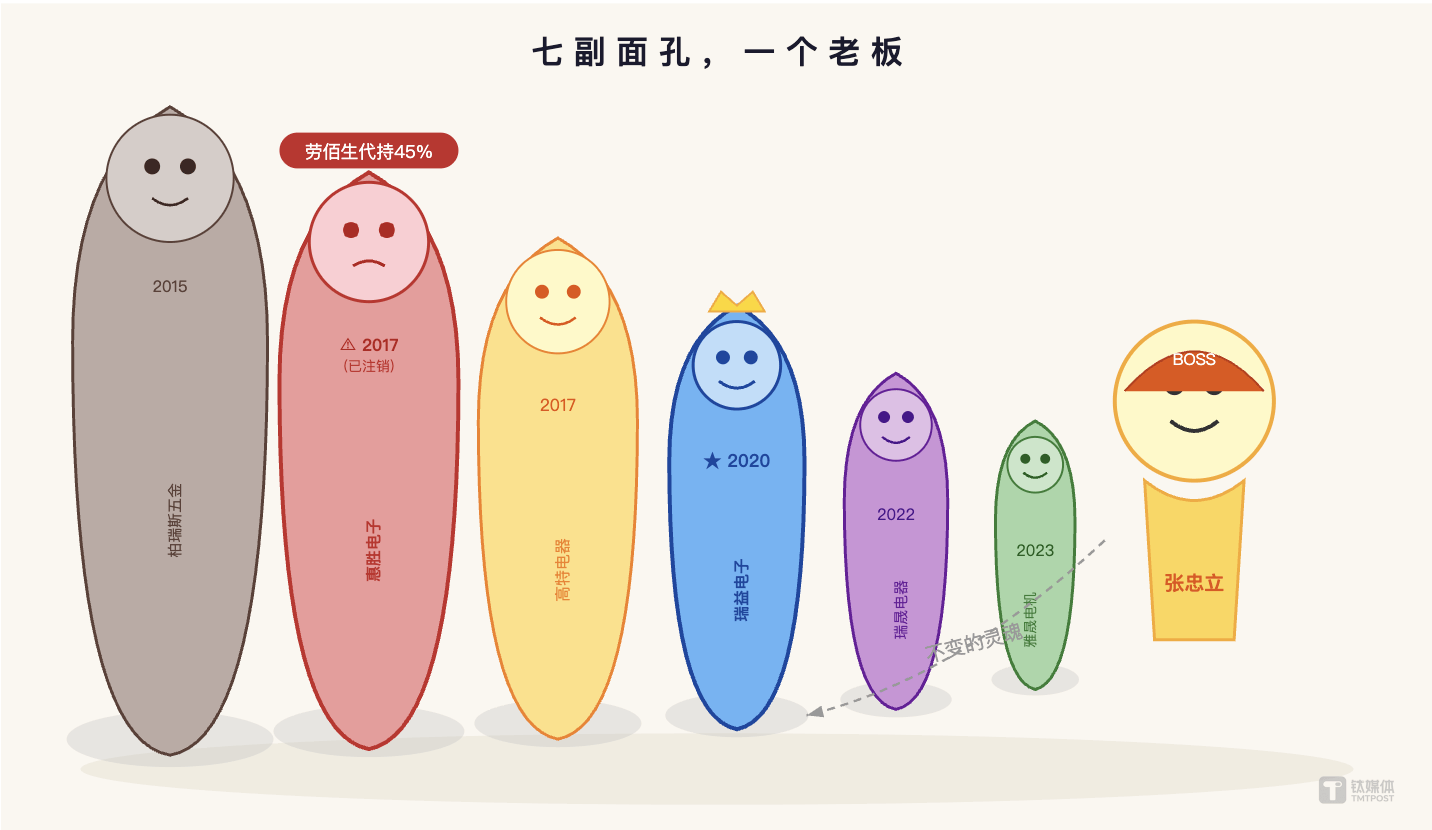 张忠良起步路径与惠康集团的陈启惠如出一辙——1990年在慈溪创立高王电子器材厂,从小零件做起、为大厂配套。
