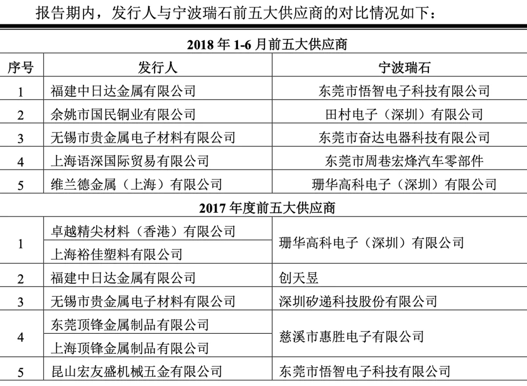 惠胜电子不仅在2017年向惠康科技供货,同年还是兴瑞科技关联方宁波瑞石(张忠良个人实控的企业)第四大供应商。