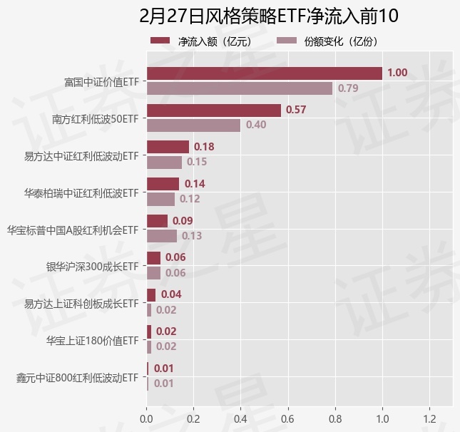 证券之星消息,2月27日风格策略ETF基金合计资金净流出4.6亿元,近5个交易日累计净流出13.84亿元,5个交易日中出现日合计资金净流出的有4天(ETF资金流向计算公式:(当日ETF场内流通份额-前一交易日ETF场内流通份额)*当日ETF均价,计算结果仅供参考)。
