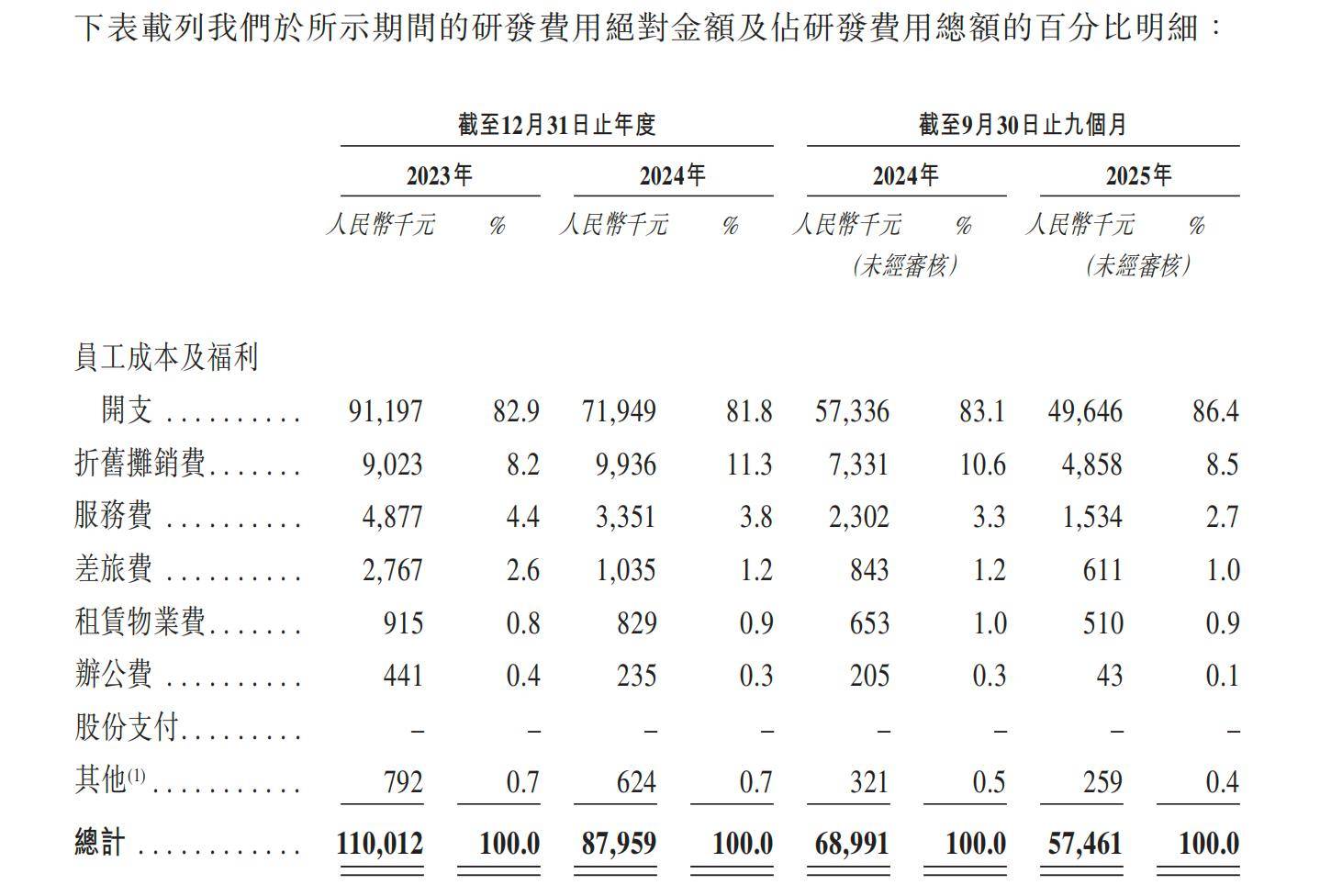 星辰天合缩减的研发费用,大部分都是从研发员工薪资里抽走的。2025年前三季度,星辰天合研发员工成本同比下降13.41%,2024年末则下降21.10%。