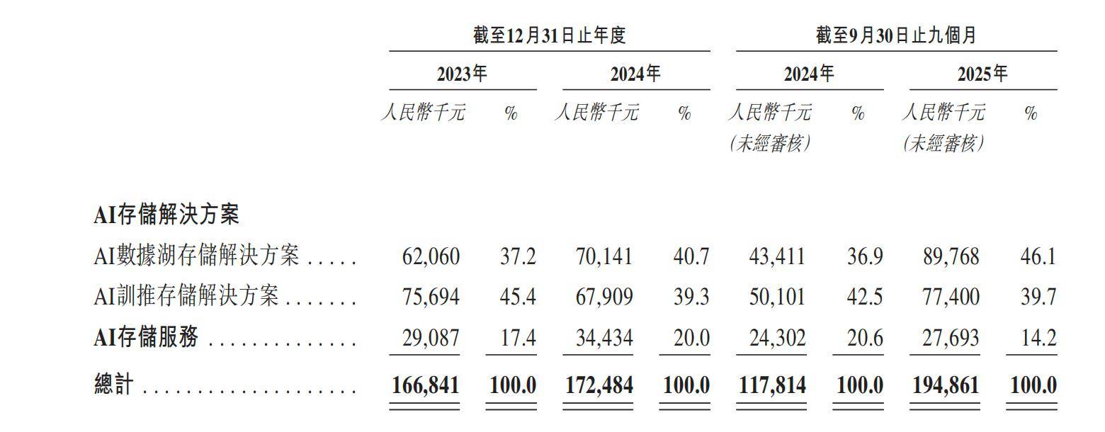 2025年,由于存储涨价潮以及AI需求爆发,星辰天合收入也迎来一波小高潮。2025年前三季度,星辰天合“软件和一体机”收入为1.67亿元,同比增长约80%;总收入达1.95亿元,已超过2024年全年收入水平。