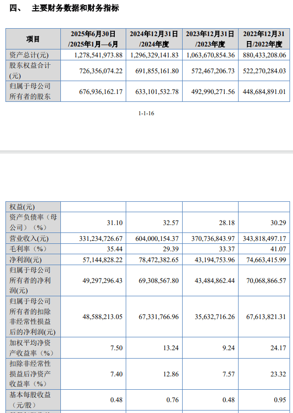 财务业绩方面,根据招股书,2022年至2024年及2025年上半年,龙辰科技营业收入分别为3.44亿元、3.71亿元、6.04亿元、3.31亿元人民币。