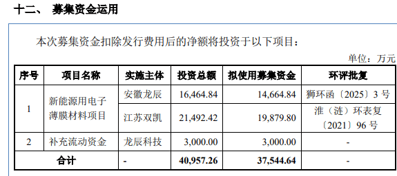 据悉,本次IPO,龙辰科技拟募集资金3.75亿元,将主要用于用电子薄膜材料项目3.45亿元、补充流动资金3000万元。