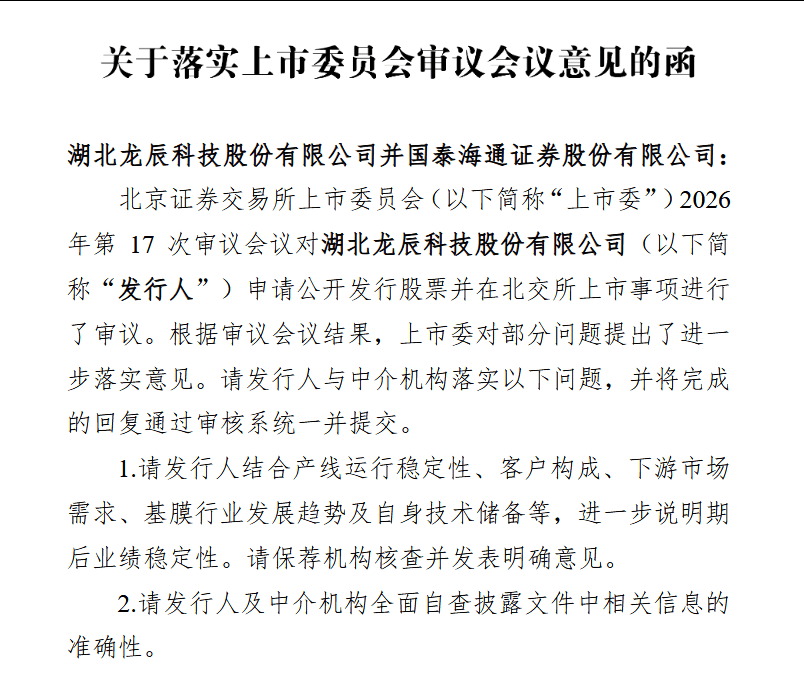 IPO雷达|龙辰科技过会,北交... 2月27日,龙辰科技上市申请获得北交所上市委审核通过。此次为公司第三次闯关北交所,也是2026年过会...