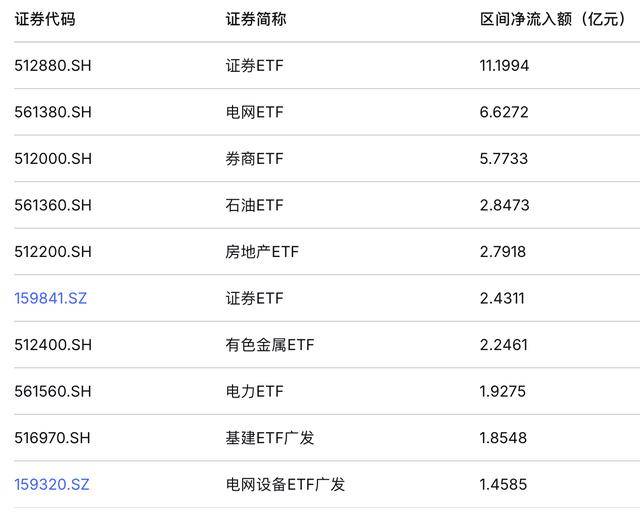其中,除了华夏电网设备ETF,国泰证券ETF、永赢卫星ETF的净流入规模相对较大,分别为11.20亿元、8.82亿元。