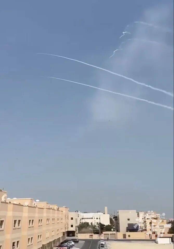 空中时不时传来导弹拦截的声音,昨天下午,阿布扎比美·军事基地拦截到导弹,有部分残骸找到。
