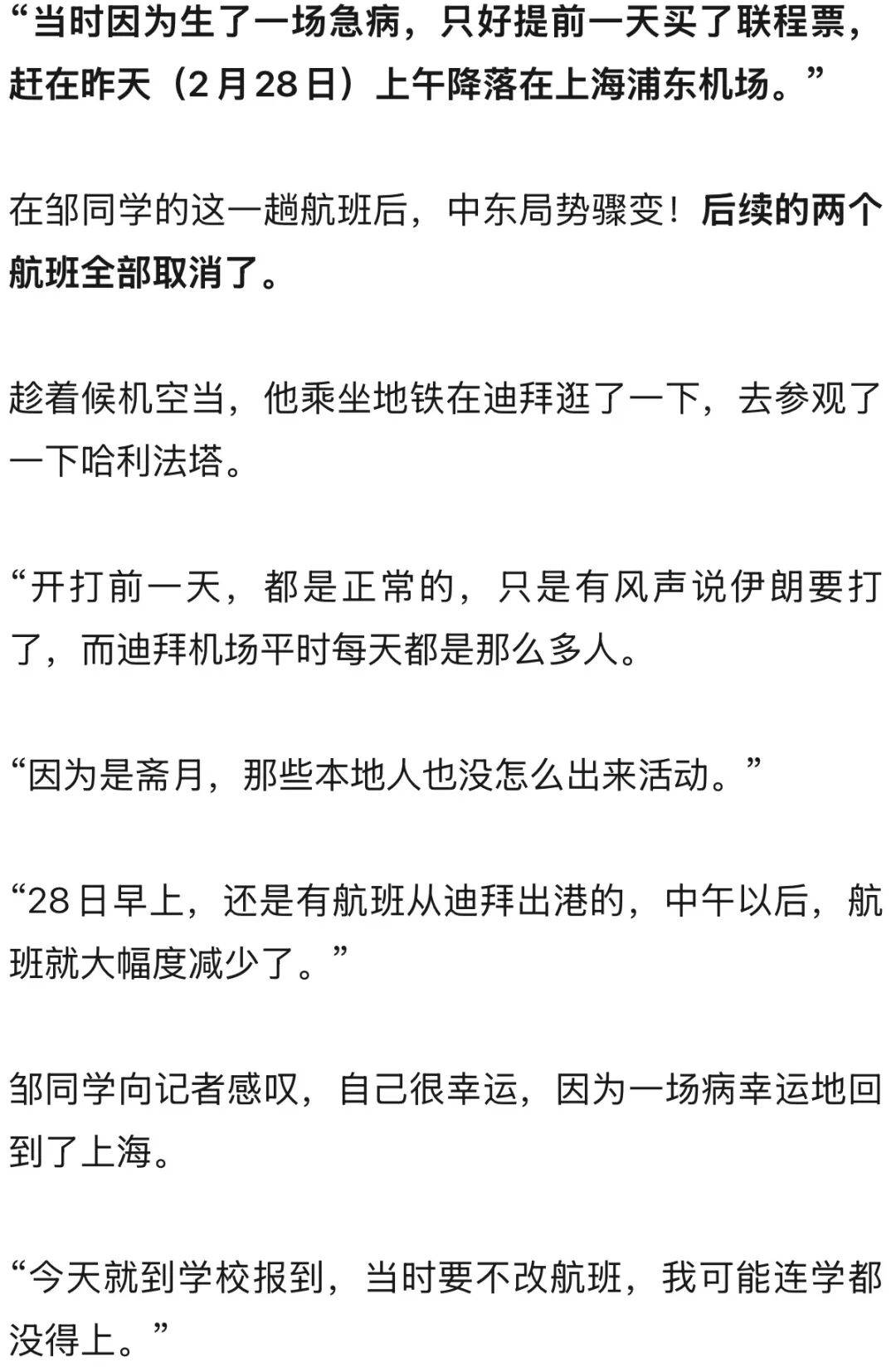 超20000名旅客滞留!上海大学生:因为一场急病,提前逃出迪拜,感叹“差点没法上学”