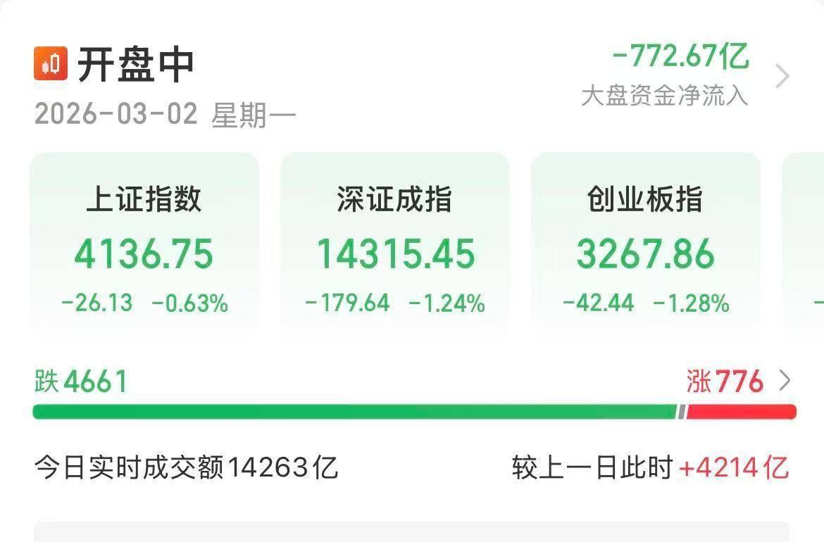 受中东局势升级影响,3月2日A股低开高走,石油、化工、国防军工板块表现强势,不过随后指数高开低走,截至发稿时,上证、深证、科创板、创业板均呈下跌之势。